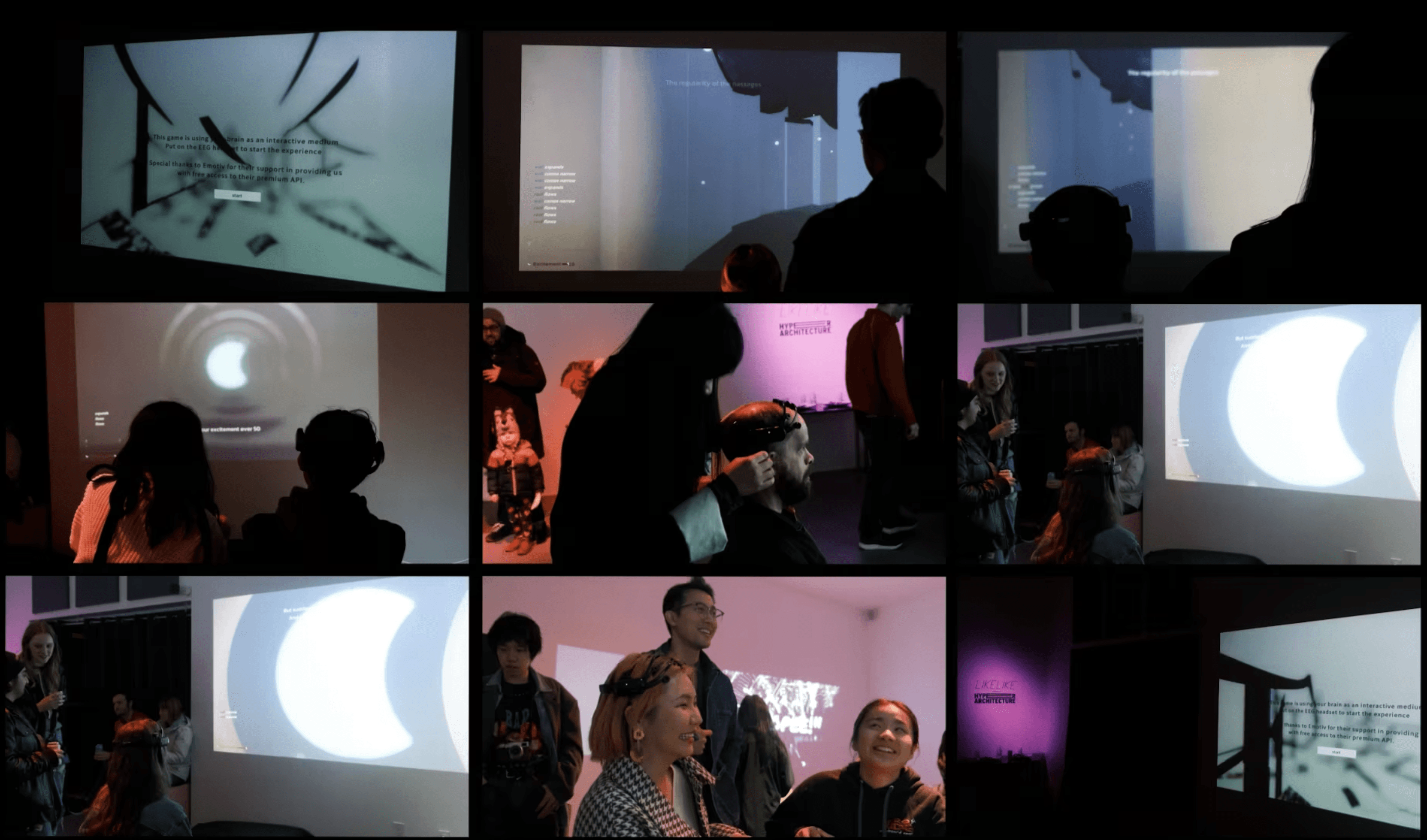 This interactive artwork delves into the intricate nature of human emotions, challenging control and predictability. Unlike training users to gamify interactions with predictable programming outcomes, EEG technology captures brainwaves, revealing deeper layers of emotional decision-making, bypassing conscious manipulation. It speaks a truth we can't lie to ourselves about. In "The Breathing Walls," participants' emotions sculpt the architectural landscape of a labyrinth. Stress constricts passages, while relaxation paints calming hues. Our work embraces negative emotions—stress, anxiety—not as roadblocks, but as integral parts of the human experience. This dynamic interplay dismantles the illusion of control, confronting us with the unpredictable nature of our emotions and their influence on our surroundings.